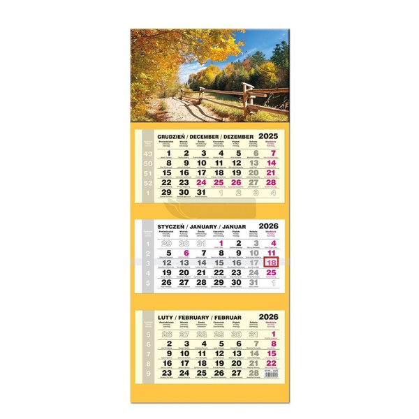 Kalendarz 2026 trójdzielny LUX wypukły Krajobrazy