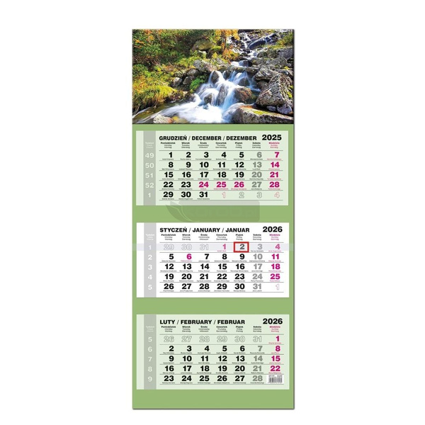 Kalendarz 2026 trójdzielny LUX gł. wypukła Woda