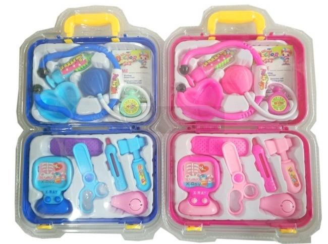 Zestaw małego doktora w walizce to doskonała propozycja dla każdego przedszkolaka, który uwielbia naśladować dorosłych i bawić się w zawody. Produkt dostępny jest w dwóch wersjach kolorystycznych: niebieskiej i różowej (cena dotyczy jednej walizki). Każdy komplet zawiera bogaty wybór akcesoriów niezbędnych do badania pacjentów, w tym kolorowy stetoskop, strzykawkę, termometr, nożyczki, młotek neurologiczny, plaster, a także zabawkowy aparat rentgenowski z wyświetlaczem. Wszystkie elementy są wykonane z bezpiecznego dla dzieci tworzywa sztucznego. Poręczna, przezroczysta walizka z uchwytem pozwala na łatwe przechowywanie i transport wszystkich przyborów. Zabawa tym zestawem nie tylko zapewnia rozrywkę, ale również pomaga oswoić się z wizytami u lekarza, rozwija zdolności manualne, kreatywność oraz uczy troski o innych. Idealny zestaw do długich godzin kreatywnej zabawy.