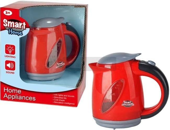 Przedstawiamy Zabawkowy Czajnik Elektryczny Smart Home w żywym czerwonym kolorze, doskonały dodatek do kącika małego gospodarstwa domowego. Ta zabawka jest przeznaczona dla dzieci powyżej 3 roku życia i wiernie odwzorowuje prawdziwy sprzęt AGD, rozwijając w dziecku ciekawość i umiejętności społeczne poprzez naśladowanie dorosłych. Czajnik wyposażony jest w efekty świetlne i dźwiękowe, które symulują działanie prawdziwego urządzenia, dzięki czemu zabawa staje się jeszcze bardziej realistyczna i wciągająca. Opakowanie wyraźnie wskazuje na funkcje LIGHTING i SOUND, a także na hasła "with lights and sounds", "Simulated life", "Cute shape" oraz "Simulation intelligence". To wspaniały sposób na wprowadzenie dziecka w świat domowych obowiązków w bezpieczny i zabawny sposób. Czajnik ma również widoczną skalę poziomu wody, co dodatkowo zwiększa realizm. Produkt z serii Home Appliances.