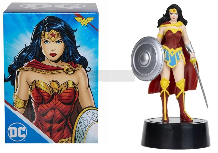 Podświetlenie LED aktywowane przyciskiem, emitujące logo Wonder Woman na powierzchnię pod figurką