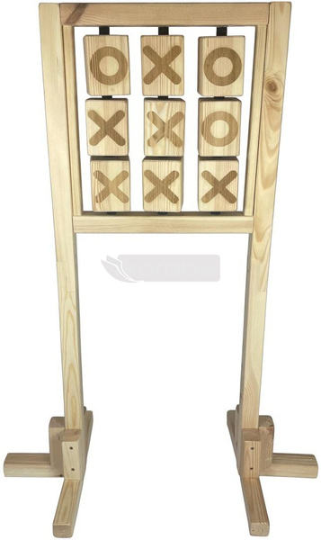 Duża, wolnostojąca gra drewniana kolorowa "Kółko i krzyżyk". PRZENACZONA DO WEWNĄTRZ LUB NA ZEWNATRZ PRZY RÓWNEJ POWIERZCHNI. Produkt jest zabezpieczony bezbarwnym impregnatem do drewna. Wyposażony w kotwy, wkręty oraz instrukcję montażu do samodzielnego złożenia oraz zamontowania. Przekrój kantówek na stelażu 4 x 4 cm. Przekrój elementów XO - 8 x 8 cm. Elementy te są obrotowe. Wymiar opakowanie pozwala na wysyłkę paczkomatową.