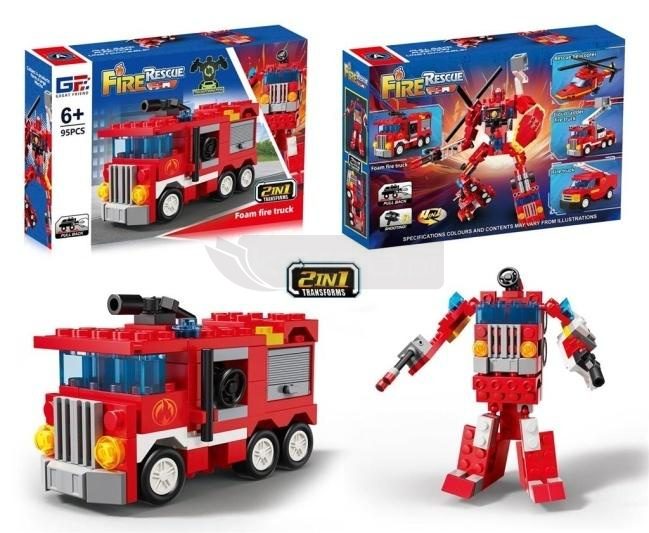 Odkryj podwójną zabawę z zestawem konstrukcyjnym Fire Rescue 2w1! Ten innowacyjny zestaw klocków pozwala na zbudowanie dwóch różnych form: realistycznego, czerwonego piankowego wozu strażackiego lub imponującego robota transformującego. Z 95 elementów, zestaw jest idealny dla dzieci od 6 roku życia, rozwijając ich zdolności manualne i kreatywność. Wóz strażacki wyposażony jest w funkcję pull back, co pozwala na dynamiczną zabawę, oraz strzelającą armatkę wodną, dodającą realizmu podczas odgrywania akcji ratunkowych. Dzięki możliwości transformacji, dzieci mogą łatwo przechodzić od odgrywania ról strażaka do ekscytujących przygód z robotem. Specyfikacje i kolory mogą nieznacznie różnić się od przedstawionych na ilustracjach. Zestaw gwarantuje godziny wciągającej zabawy i jest świetnym prezentem dla każdego małego miłośnika pojazdów ratunkowych i robotyki.