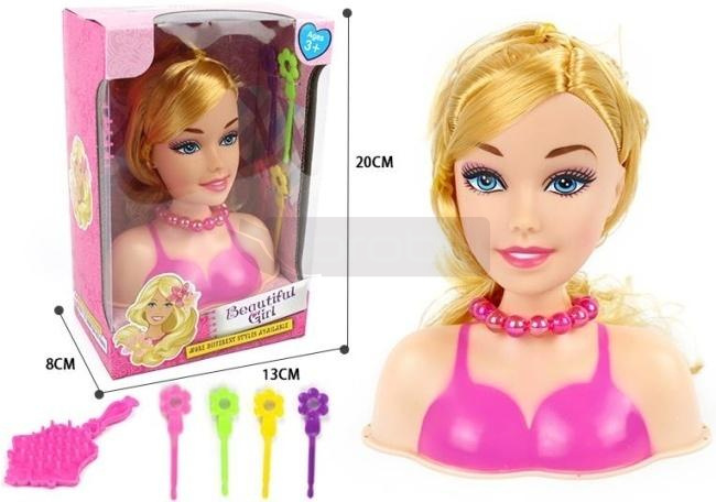 Przygotuj się na godziny kreatywnej zabawy z głową lalki Beautiful Girl do stylizacji włosów. Ta zabawka to świetny sposób, aby małe stylistki mogły ćwiczyć swoje umiejętności fryzjerskie i makijażowe. Lalka ma piękne, długie blond włosy, które można czesać, zaplatać i upinać na wiele różnych sposobów. Głowa jest osadzona na różowym torsie i ozdobiona modnym, różowym naszyjnikiem z koralików. W zestawie oprócz samej głowy do stylizacji znajdziesz również akcesoria: różową szczotkę do włosów oraz cztery kolorowe spinki w kształcie kwiatków (różową, żółtą, zieloną i fioletową), które urozmaicą każdą fryzurę. Całość zapakowana jest w estetyczne, różowe pudełko z okienkiem. Wysokość głowy to około 20 cm, co zapewnia wygodę podczas zabawy. Wymiary opakowania: 13 cm szerokości i 8 cm głębokości. Produkt polecany jest dla dzieci powyżej 3 roku życia. Ta zabawka to doskonały pomysł na prezent, który rozwija wyobraźnię, precyzję i zdolności artystyczne dziecka.