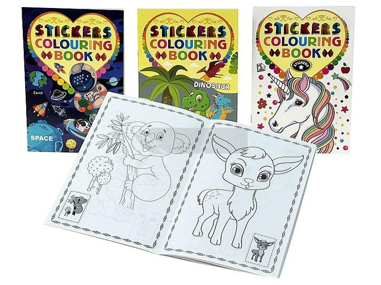 kolorowanka (16 stron) z naklejkami, mix wzorów: dinusie, jednorożce, astronauci, zwierzęta; 21x14cm PPB