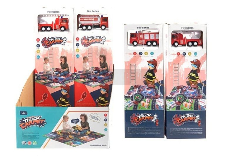 W zestawie: wóz strażacki, mata, dł. pojazdu 13 cm, wym. maty po rozłożeniu 70 x 80 cm, wym. opak. 46,5 x 16 cm x 5,5 cm, 3+