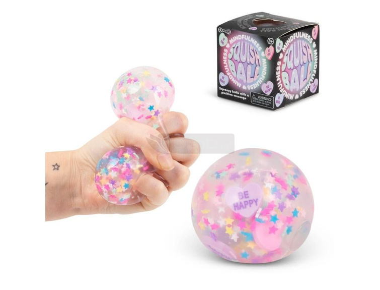 Antystresowa piłka mindfulness zaprojektowana, by wspierać koncentrację i relaks. Idealna do terapii sensorycznej, w biurze lub w domu. Przyjemna w dotyku, pomaga rozładować napięcie. W środku serduszka z pozytywnymi sentencjami.