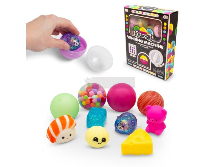 Zestaw 10 mini zabawek sensorycznych w stylu automatu z niespodziankami. Każda kapsułka zawiera inny gadżet do ściskania lub rozciągania. Doskonała zabawa i idealny pomysł na prezent.