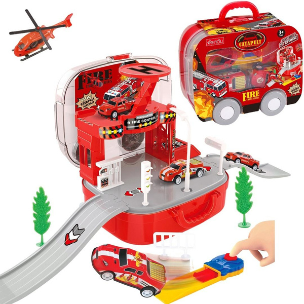 Rozbudowana Baza Strażacka : Po rozłożeniu walizka ukazuje dwupoziomową stację z rampami, parkingiem i miejscem startu dla pojazdów.