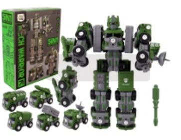 Zestaw składa się z pięciu pojazdów: wozu transportowego, wyrzutni rakiet, samochodu radarowego, cysterny i ciężarówki logistycznej. Wszystkie elementy są skręcane śrubokrętem, co pozwala dziecku samodzielnie montować i demontować konstrukcję. Gdy wszystkie moduły zostaną połączone, powstaje imponujący robot wojskowy gotowy do misji obronnych i zadań specjalnych!