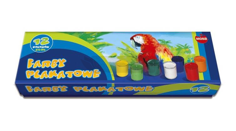 Farby plakatowe w słoiczkach to silne kryjące farby wodorozcieńczalne, doskonale roztarte, pozwalające malować na różnych podłożach takich jak papier, karton, drewno, gips. Farby plakatowe produkowane są z najwyższej jakości komponentów, zawierających naturalne składniki. Służą do edukacji plastycznej dzieci i młodzieży poznawania kolorów i zasad ich mieszania oraz do wykorzystania w profesjonalnych pracowniach artystów plastyków.