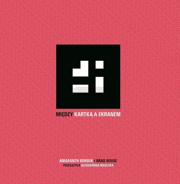 Między Kartką a Ekranem (Between Page and Screen) to książka poetycka wykorzystująca rzeczywistość rozszerzoną, w której opowiedziana jest historia miłosna dwojga bohaterów ? K i E. Książka nie zawiera żadnych słów, a jedynie czarno-białe geometryczne wzory, które ? po zetknięciu z kamerą internetową ? przywołują na ekranie tekst. Odbicie czytelnika z otwartą książką w dłoniach ukazuje język ożywający i zmieniający się wraz z każdą przewracaną stroną. Historia rozwija się poprzez zabawną i zagadkową wymianę listów między K i E, którzy próbują zdefiniować swoją relację. To poezja pełna aluzji, anagramów oraz etymologicznych i dźwiękowych pokrewieństw między słowami oraz celebracja języka i aktu czytania.