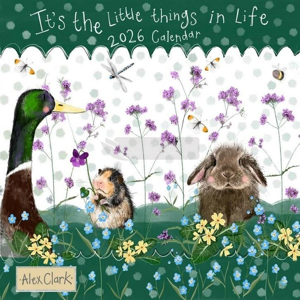 Kalendarz ścienny It's the Little things in Life na rok 2026. Ten pięknie ilustrowany kalendarz zawiera wybór autorskich prac Alex Clark, z których każdy miesiąc prezentuje inny motyw w jej niepowtarzalnym stylu. Możemy zanotować w nim wszystkie spotkania i urodziny. Opakowanie biodegradowalne.