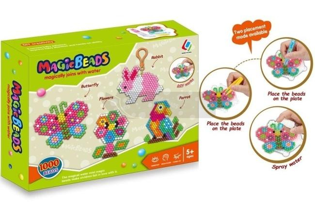 Magic Beads Zestaw Kreatywny Koraliki Wodne 1000 Elementów. Odkryj magiczną zabawę z kreatywnym zestawem Magic Beads, który pozwoli dzieciom od 5 roku życia na stworzenie własnych, kolorowych dzieł sztuki. Koraliki łączą się w trwałą konstrukcję za pomocą zwykłej wody. To fantastyczna, bezpieczna i edukacyjna zabawka, która stymuluje wyobraźnię i rozwija umiejętności motoryczne i koordynację ręka-oko. W opakowaniu znajduje się aż 1000 koralików w różnych kolorach, a także wszystkie niezbędne akcesoria do rozpoczęcia zabawy. Dziecko może ułożyć cztery piękne wzory: motylka, bukiet kwiatów, uroczego królika i kolorową papugę. Instrukcja jest prosta: wystarczy ułożyć wybrane koraliki na dołączonej podkładce, a następnie spryskać gotowy wzór wodą. Po wyschnięciu figurki są trwałe i mogą służyć jako breloczki. Zestaw oferuje dwa tryby precyzyjnego układania: za pomocą specjalnej pensety lub aplikatora, co ułatwia dostosowanie metody do wieku i umiejętności dziecka. Zabawka jest polecana do samodzielnej zabawy oraz jako twórcze zajęcie podczas spotkań z rówieśnikami.