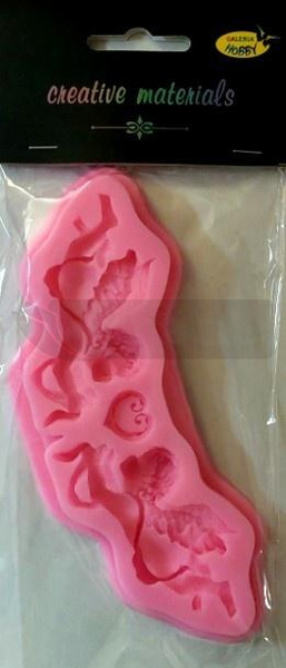 Forma silikonowa wielkości 15,5 cm x 6,5 cm do odlewów z gipsu, mas plastycznych, plasteliny, modeliny, mas cukierniczych itp.Z formy jest możliwość odlania lub stworzenia 3 Elementów - 2 w kształcie aniołka ( cherubinka ) i jednego w kształcie serca z ornamentem.