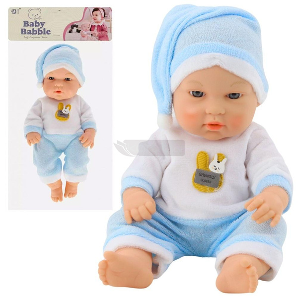 Lalka bobas w niebieskiej piżamce i czapeczce