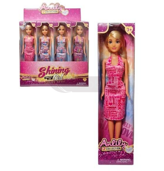 Lalka w modnej letniej sukience z napisami. Produkt występuje w kilku wersjach kolorystycznych, wybierany losowo. Cena dotyczy jednej sztuki. Zapakowany w kartonowe pudełko. Podane wymiary są wymiarami opakowania.