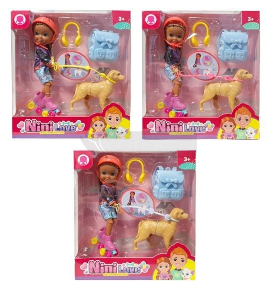 Lalka z psem na smyczy. W zestawie lalka w kasku na wrotkach, piesek, plecak i słuchawki. Produkt występuje w kilku wersjach kolorystycznych, wybierany losowo. Cena dotyczy jednej sztuki. Zabawka dla dzieci od 3 lat. Zabawka zapakowana w kartonowe opakowanie. Podane wymiary są wymiarami opakowania.