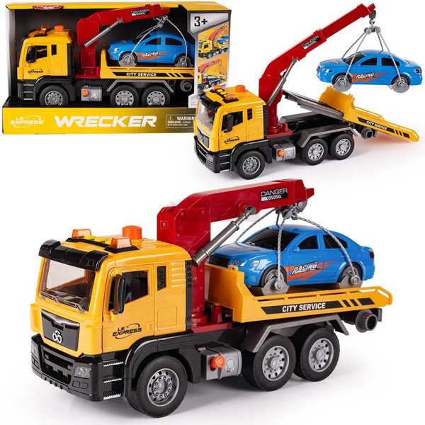- Dodatkowo, obrotowy wysięgnik z hakiem umożliwia zaczepienie autka i bezpieczne umieszczenie go na platformie. Dzięki tym funkcjom maluch może odgrywać scenariusze ratowania uszkodzonych pojazdów i przewożenia ich do warsztatu.