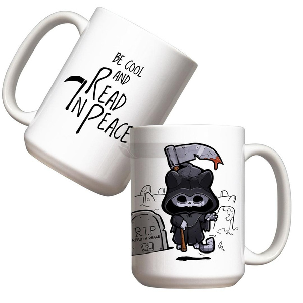 Trupcio pilnuje, byś czytał(a) w pokoju... dosłownie! ,,Read in Peace" to nie tylko motto, to styl życia (i pożycia literackiego). A z nim - książka, kawa i spokój wieczny. Idealny dla moli książkowych, fanów fantasy, czarnego humoru i tych, którzy już dawno odleźli od rzeczywistości. Pojemność: 440ml Wysokość: 120 mm Średnica: 85 mm