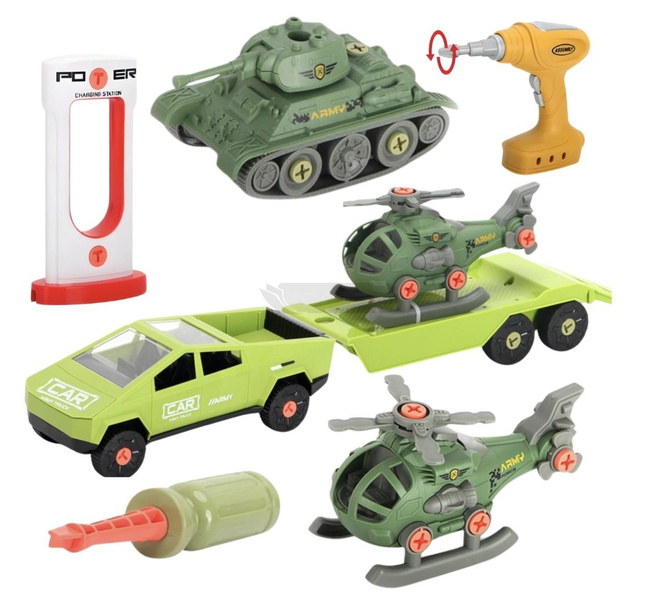Samochód do montażu z przyczepą i helikopterem