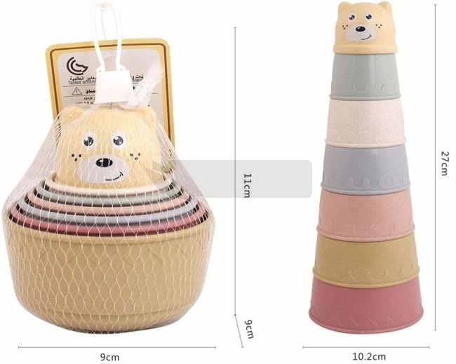 Wielofunkcyjny zestaw kubeczków do układania z motywem misia to doskonały wybór dla najmłodszych. Ta klasyczna zabawka edukacyjna składa się z kilku kubeczków w stonowanej, pastelowej kolorystyce, które można układać w wysoką wieżę lub chować jeden w drugim, ucząc się relacji między wielkościami. Na szczycie wieży umieszcza się sympatyczną główkę misia, która jest jednocześnie największym kubeczkiem lub dekoracyjnym zwieńczeniem. Zabawa kubeczkami doskonale wspiera rozwój motoryki małej, precyzji ruchów oraz logicznego myślenia. Dzięki trwałemu materiałowi i braku ostrych krawędzi, zestaw jest bezpieczny i może służyć do kreatywnej zabawy zarówno w domu, jak i podczas kąpieli. Lekka i poręczna konstrukcja sprawia, że łatwo zabrać ją ze sobą na spacer czy do dziadków. To wartościowa zabawka, która zapewni wiele godzin wciągającej zabawy.