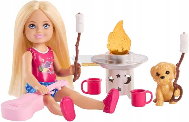 Zestaw Chelsea Biwakowa przygoda inspiruje do snucia opowieści i zabawy przy „ognisku” z małą lalką Chelsea, jej szczeniaczkiem i 6 akcesoriami tematycznymi!