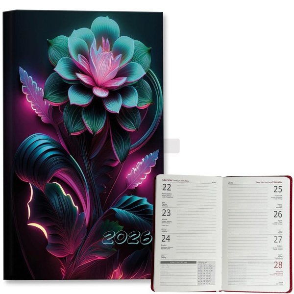 Kalendarz 2026 A6 tygodniowy Neonowe Kwiaty