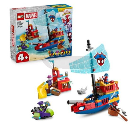 Bogata w funkcje zabawka dla dzieci zawiera statek piracki, Pajęczą Wyspę ze zjeżdżalnią, statek Zielonego Goblina oraz mniejszą łódź. Na LEGO statku pirackim znajduje się armata, na wyspie jest wyrzutnia dysków, a na statku Zielonego Goblina są wyrzutnie. Pajęcza sieć może posłużyć do złapania ryby, skrzyni skarbów lub statku Goblina. Zabawka konstrukcyjna dla 4-latka i fanów serialu Spidey i super-kumple zawiera kolorowe ilustrowane instrukcje, klocki startowe oraz osobne woreczki zawierające po jednym modelu do zbudowania, dzięki czemu kreatywne budowanie jest szybkie i przyjemne.