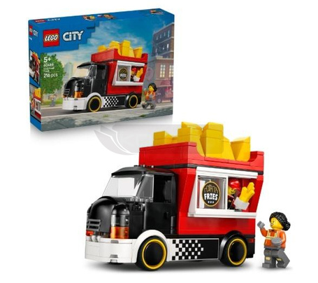 Serwowanie pyszności to dziecinnie prosta sprawa dzięki zestawowi LEGO(R) City Food truck z frytkami (60488) dla dzieci w wieku od pięciu lat. Kolorowy food truck wyposażony jest w odczepiany kiosk w kształcie wielkiej porcji frytek. Dzieci mogą zdjąć dach, aby uzyskać dostęp do szczegółowej strefy przygotowywania posiłków, wyposażonej we frytkownicę, przyprawy i przesuwane okienko do obsługi klientów. Ten model food trucka ma również otwieraną maskę z zabawkowym silnikiem oraz minifigurki sprzedawcy i klienta.