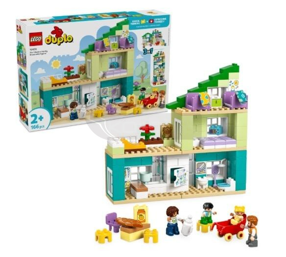 Klocki do budowania LEGO DUPLO Nowoczesny dom rodzinny 3 w 1 z figurkami (10470) to urocza zabawka dla dzieci od 2 lat, która zapewni mnóstwo kreatywnej zabawy w odgrywanie ról i rodzinnych zwyczajów. Dzięki czterem figurkom DUPLO dwojgu rodzicom, dziecku i niemowlęciu ta interaktywna zabawka dla dziewczynki i chłopca pozwala maluchom rozwijać umiejętności społeczne i emocjonalne podczas zabawy domkiem LEGO.