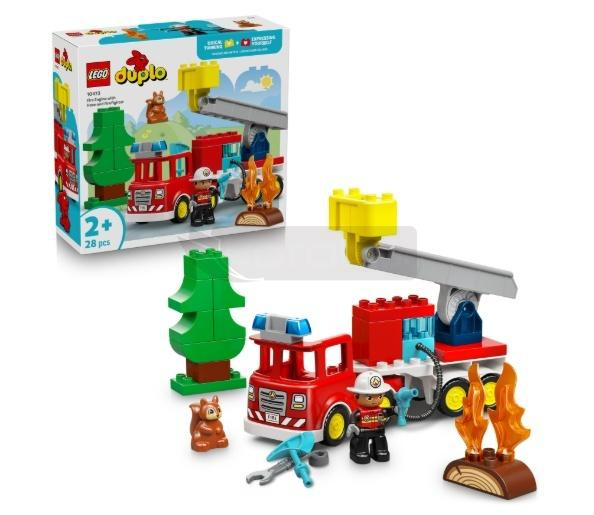 Model wozu strażackiego DUPLO jest pełen fajnych funkcji, które pobudzają kreatywność podczas tworzenia historii o akcjach ratowniczych. Ta zabawka ze strażakiem posiada składaną drabinę i przezroczysty klocek DUPLO imitujący zbiornik na wodę. Początkujący strażacy mogą udawać, że podłączają do niego wąż, aby ugasić pożar. Małe dzieci rozwijają również zdolności motoryczne, przekształcając wóz strażacki tak, aby jego przyczepa stała się przegubowa, co ułatwia pokonywanie zakrętów.