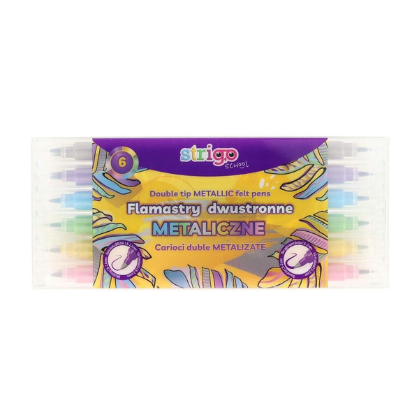 Flamastry dwustronne metaliczne 6 kolorów STRIGO
