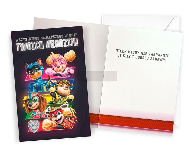 Kartka z wyjątkowymi życzeniami w środku, zdobiona metaliczną folią, kolorowa w środku i na zewnątrz, z białą kopertą w zestawie.