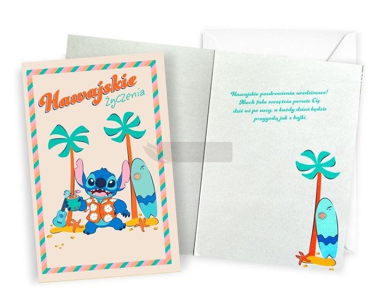 Kartka z wyjątkowymi życzeniami w środku, zdobiona metaliczną folią, kolorowa w środku i na zewnątrz, z białą kopertą w zestawie.