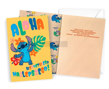 Kartka z wyjątkowymi życzeniami w środku, zdobiona metaliczną folią, kolorowa w środku i na zewnątrz, z białą kopertą w zestawie.