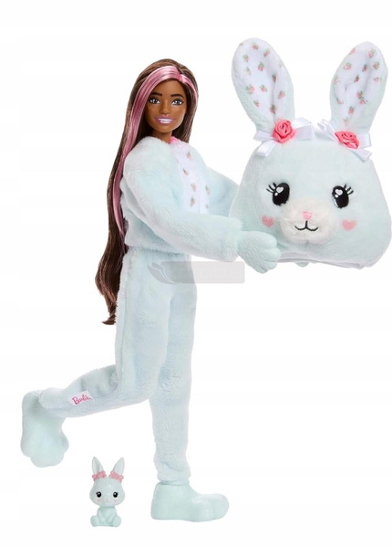 Przebieraj i stylizuj lalkę Barbie® – po odwróceniu na drugą stronę góra kostiumu staje się kurtką z niezwykle miękkiego materiału ze ślicznym nadrukiem. Dodatkowo głowa kostiumu zmienia się w legowisko dla minizwierzątka.