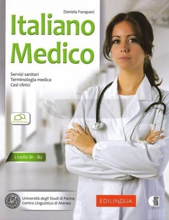 Italiano Medico, zrealizowany we współpracy z Uniwersytetem w Parmie, jest przeznaczony dla studentów uczących się na włoskich uniwersytetach medycznych, którzy osiągnęli poziom B1/B2. Ze względu swoją uniwersalną strukturę może być używany również jako narzędzie do samodzielnej nauki, ponieważ zawiera ćwiczenia wraz z rozwiązaniami. Podręcznik jest podzielony na dziesięć rozdziałów tematycznych, z których dwa poświęcone są słownictwu, trzy objaśniają działanie włoskiego systemu zdrowotnego, szpitali oraz krwiodawstwa, a ostatnie pięć dokładnie opisują działanie oraz słownictwo związane z układami: trawiennym, krwionośnym, oddechowym, moczowym oraz kostnym.
