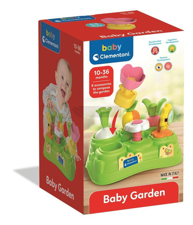 Bardzo kolorowy i wesoły ogród zaprojektowany, aby zapewnić dziecku zabawne i naturalne wsparcie, gdy odkrywa kształty i kolory oraz rozwija swoją zręczność manualną.n Najmłodsze dzieci będą się dobrze bawić, umieszczając kwiaty i warzywa w odpowiednich miejscach.n Stymuluje koordynację ręka-oko i percepcję wzrokową.