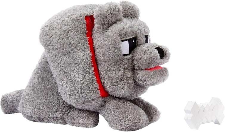 Interaktywna zabawka Wilk Dennis do karmienia z filmu „Minecraft: Film” to mięciutki w dotyku futrzasty towarzysz.
