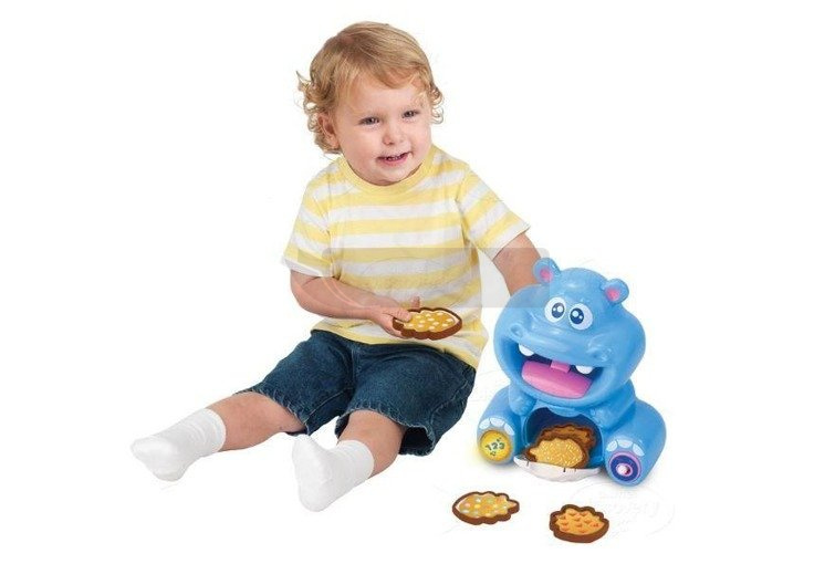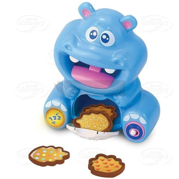 Ciasteczkowy Hipcio to fantastyczna zabawka od Dumel Discovery, dzięki której nauka to świetna zabawa! Uroczy, niebieski hipcio to straszny łakomczuch. Wcina ciasteczka aż mu się uszy trzęsą. Naciśnij na stópkę hipcia i rozpocznij zabawę! Gdy dziecko karmi ciasteczkowego żarłoka, ten radośnie zajada się smakołykami, licząc głośno każde zjedzone ciasteczko. Zabawny hipopotam wydaje przy tym masę wesołych dźwięków. Jak myślisz, ile ciasteczek jest w stanie zjeść hipcio? 3,6 a może 7? Karm zwierzaka, licz ciasteczka, a po wyjęciu ich z brzuszka, zacznij zabawę od początku. Jednak to nie wszystko! Uroczy hipopotam posługuje się również językiem angielskim! Możecie liczyć ciasteczka i uczyć się języka obcego jednocześnie! To dopiero pyszna zabawa! W zestawie hipcio 5 ciasteczek Wiek dziecka: 12 miesięcy + Wymagane baterie: 2 x AA (dołączone do zestawu)