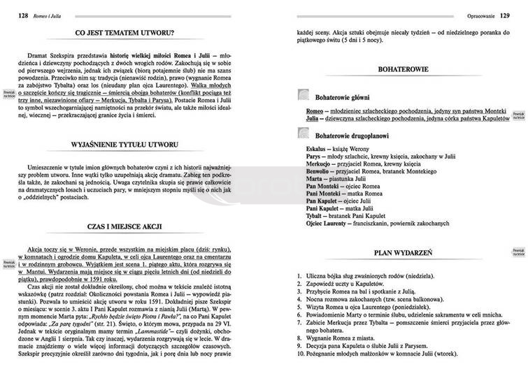 zawiera plan wydarzeń, wnikliwie wyjaśnioną problematykę oraz szerokie charakterystyki bohaterów.