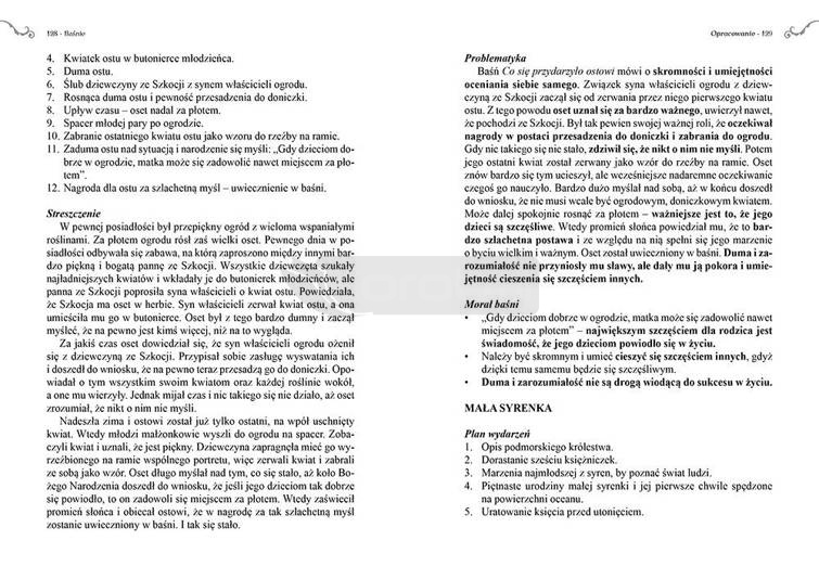 Wydanie Baśni kompletne bez skrótów i cięć w treści. W tym wydaniu znajdziesz odpowiedzi na pytania z podręcznika - pewniak na teście, czyli wskazanie zagadnień, które zwykle pojawiają się w pytaniach z danej lektury we wszelkich testach sprawdzających wiedzę, a także w podręcznikach i na klasówkach. Zawiera bardzo szczegółowe streszczenie oraz drugie skrócone, ułatwiające szybkie przygotowanie się przed lekcją. Opracowanie zawiera plan wydarzeń, wnikliwie wyjaśnioną problematykę oraz szerokie charakterystyki bohaterów.