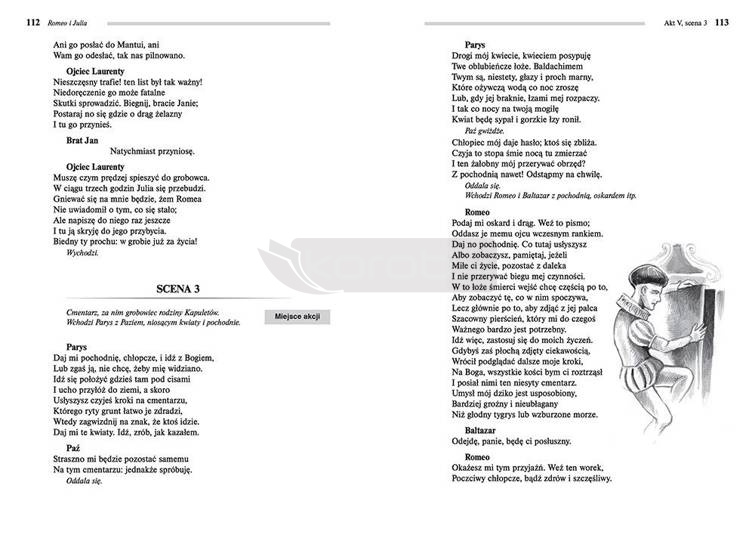 Wydanie Romea i Julii kompletne bez skrótów i cięć w treści. W tym wydaniu znajdziesz odpowiedzi na pytania z podręcznika - pewniak na teście, czyli wskazanie zagadnień, które zwykle pojawiają się w pytaniach z danej lektury we wszelkich testach sprawdzających wiedzę, a także w podręcznikach i na klasówkach. Zawiera bardzo szczegółowe streszczenie oraz drugie skrócone, ułatwiające szybkie przygotowanie się przed lekcją. Opracowanie zawiera plan wydarzeń, wnikliwie wyjaśnioną problematykę oraz szerokie charakterystyki bohaterów.