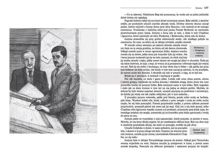 Wydanie Granicy kompletne bez skrótów i cięć w treści. W tym wydaniu znajdziesz odpowiedzi na pytania z podręcznika - pewniak na teście, czyli wskazanie zagadnień, które zwykle pojawiają się w pytaniach z danej lektury we wszelkich testach sprawdzających wiedzę, a także w podręcznikach i na klasówkach. Zawiera bardzo szczegółowe streszczenie oraz drugie skrócone, ułatwiające szybkie przygotowanie się przed lekcją. Opracowanie zawiera plan wydarzeń, wnikliwie wyjaśnioną problematykę oraz szerokie charakterystyki bohaterów.