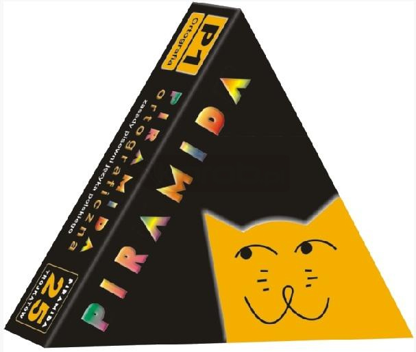 Piramida to wspaniała zabawa połączona z nauką, ponieważ rozwija u dziecka zdolność do myślenia i zapamiętywania, uczy wytrwałości, wzmacnia koncentrację i skutecznie pomaga przezwyciężyć trudności w procesie uczenia się. Budowanie piramidy jest proste i odbywa się na zasadzie gry w domino, w efekcie rozwiązania wszystkich zadań otrzymujemy imponującą piramidę.Piramida ortograficzna P1 to wstęp do nauki zasad ortograficznych, stanowi wartościową pomoc w nauce reguł pisowni języka polskiego. Dzięki nauce poprzez zabawę dzieci szybko przyswajają tak trudne reguły ortograficzne. W tej pomocy dzieci na podstawie 30 zadań uczą się prawidłowej pisowni wyrazów z ó, u, rz, ż, ch, h, w drugiej zaś Piramidzie Ortograficznej P2 dzieci poznają zasady pisowni wymiennej. W zestawie znajduje się 25 trójkątów.