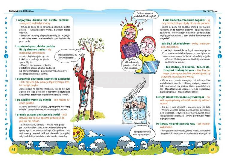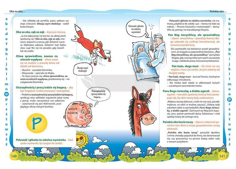 Ilustrowany słownik przysłów zawiera najciekawsze i najważniejsze przysłowia, z jakimi można spotkać się w życiu codziennym, w książkach, podręcznikach. Słownik powstał przede wszystkim z myślą o uczniach szkoły podstawowej, ale przyda się wszystkim dzieciom, a nawet dorosłym! Hasła - przysłowia wyjaśnione są w przystępny sposób, do tego każde z nich zawiera opowiastkę, historyjkę ilustrującą dane przysłowie. Scenki te aż skrzą się od humoru! Sprawia to, że słownik czyta się jak książkę, wprost nie można się od niej oderwać.