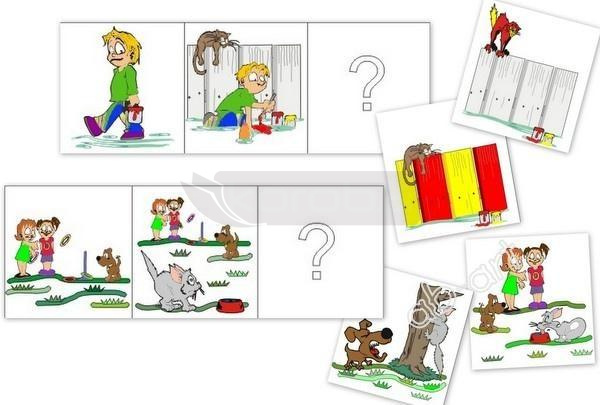 Zestaw historyjek obrazkowych do opowiadania, w których to dzieci decydują o zakończeniu.