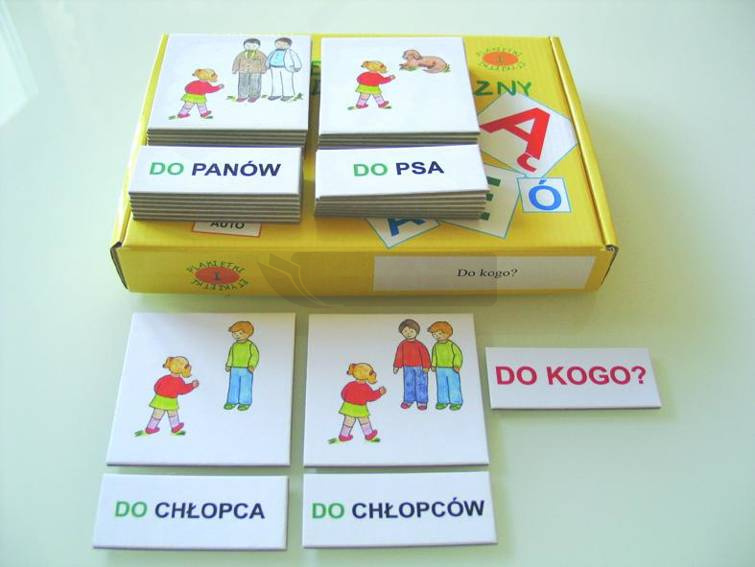 Zestaw ten służy do nauki stosowania odpowiedniej formy rzeczownika i zastosowania przyimka (do) w odpowiedzi na pytanie: Do kogo? ( w liczbie pojedynczej i liczbie mnogiej) - poprzez podawanie plakietek i etykietek lub wypowiedź.