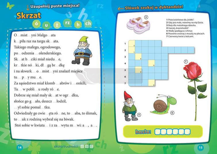 W drugiej części natomiast są teksty, które trzeba dziecku podyktować - dzięki temu ma szansę ćwiczyć dyktanda tak, jak w szkole. Odskocznią od pracy są zabawne krzyżówki. Same teksty dyktand są humorystyczne i na pewno spodobają się dzieciom.